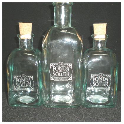 Botellas de cristal personalizadas con logotipo del establecimiento.