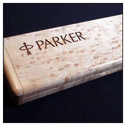 Caja de boligrafo b nadera grabada con Láser.