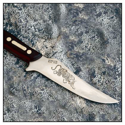 Hoja de cuchillo de acero grabada con Láser.