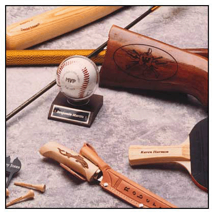 Objetos deportivos en diversos materiales personalizados con grabacion Láser.