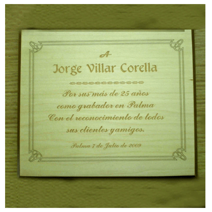 Plca de homenaje en madera grabada a Láser.